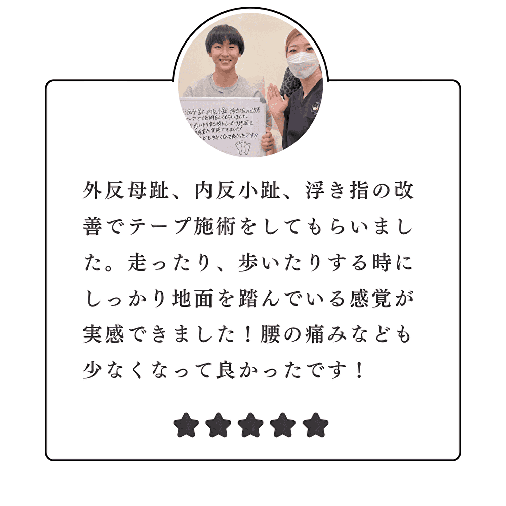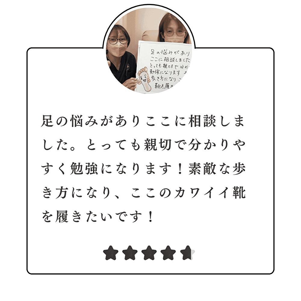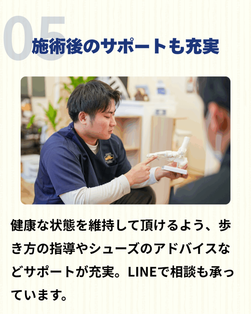 自分の足で痛みなく歩ける喜びを感じられるようにサポートさせていただきます。