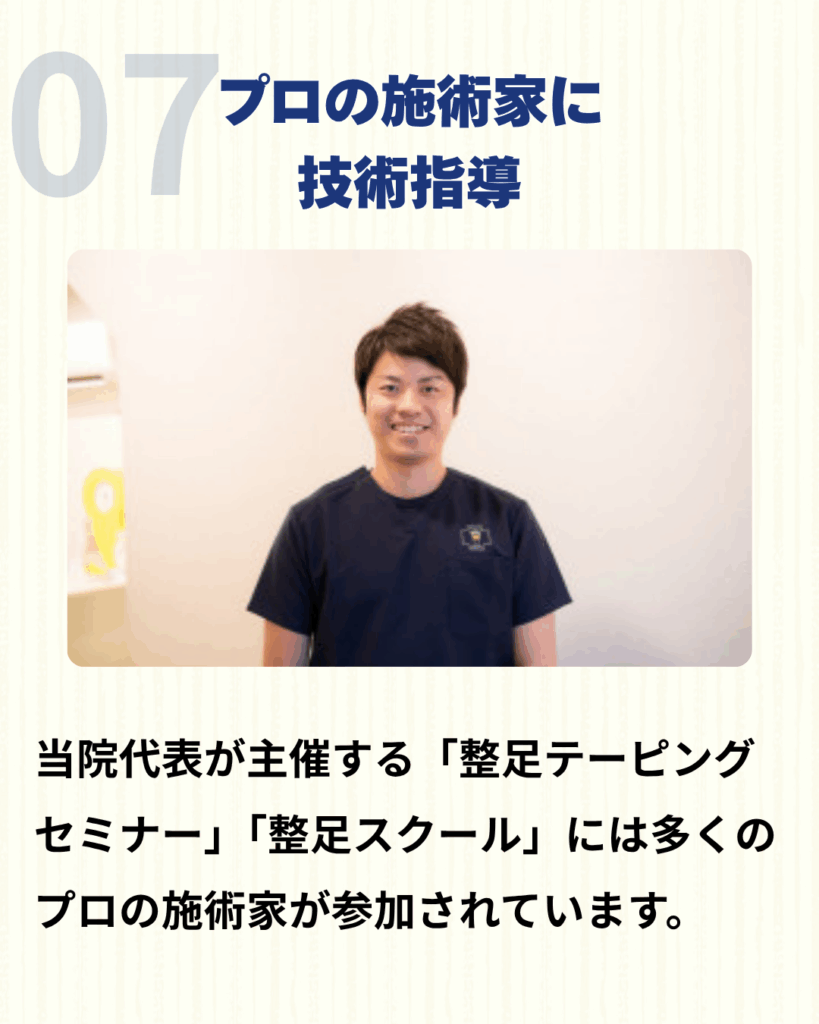 足は唯一地面と接する土台となる部分です。土台がしっかりしていないと上部の関節などにも危険な状態が忍び寄り、痛みや筋力低下機能低下が出現してしまうことに気づき、足へのアプローチの重要性をとても感じました。病院や整体で悩みが解決できない方に一度体験していただき、根本的な改善を目指して一緒に頑張りたいと思います。